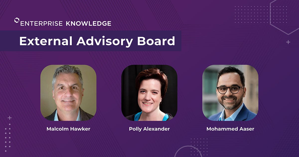 Enterprise Knowledge (EK) announced the creation of an External Advisory Board (EAB) of globally recognized leaders in the fields of Knowledge Management, Information Management, Content Management, and Data Management. The EAB will have multiple responsibilities with EK, including advising EK’s Leadership Team on the latest trends in the field, collaborating with EK subject matter experts to produce new thought leadership content, and teaming with EK consultants to advise and offer learning opportunities to EK’s clients.